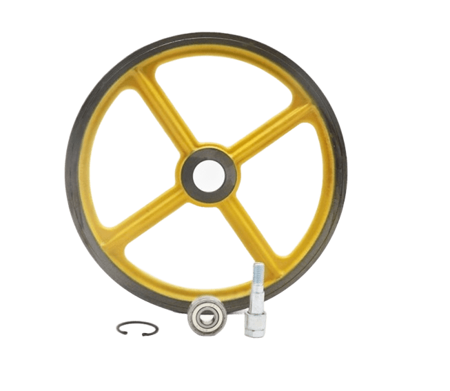 Essential mechanical parts for smooth elevator movement, including wheels, belts, and braking systems.